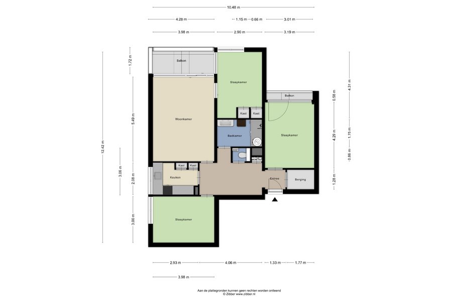 Bij binnenkomst in het appartement kom je in de ruime hal met een bergkast/garderobe meterkast, toiletruimte met zwevend closet en fonteintje, de badkamer en dichte keuken. Vanuit de hal zijn er twee slaapkamers en vanuit de woonkamer is de derde slaapkamer bereikbaar.