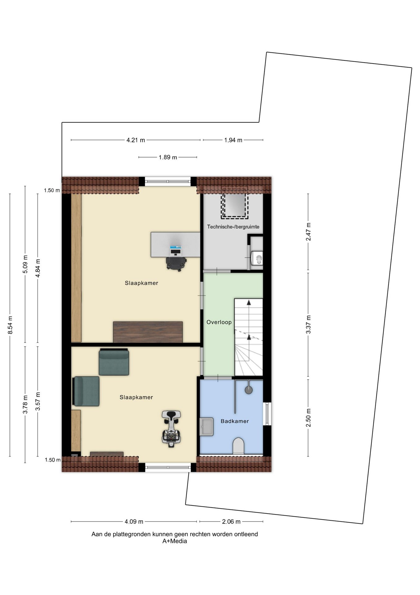 Via de vaste trap bereikt u de eerste verdieping. Hier bevinden zich twee ruime slaapkamers, een tweede badkamer en een technische/bergruimte.