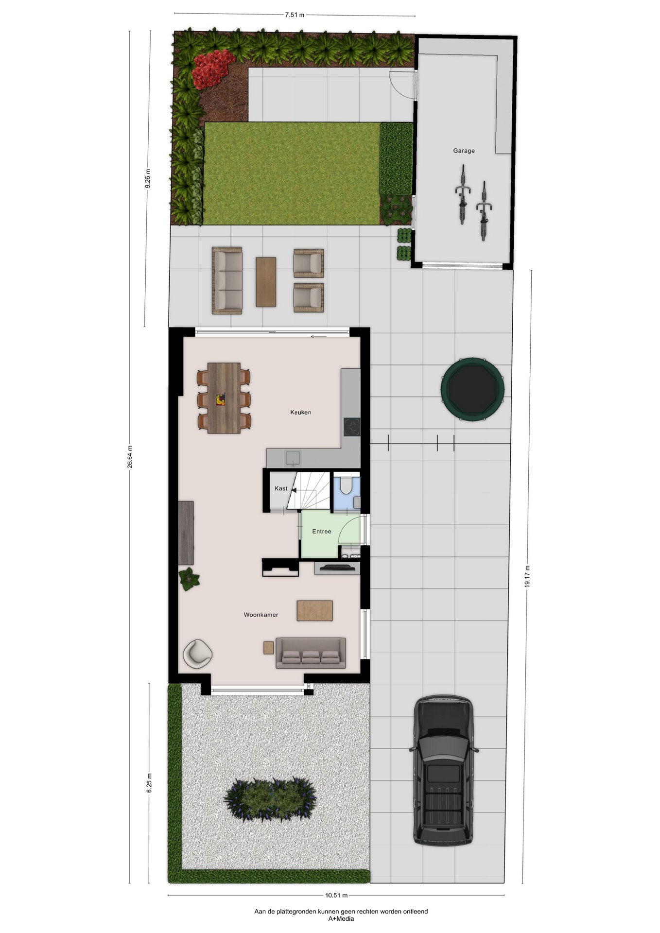 Achter in de tuin is een tweede terras aanwezig, een fijne plek om in alle rust van het buitenleven te genieten. Daarnaast beschikt de tuin over een praktische garage voor zien van een elektrische bedienbare garagedeur en een loopdeur aan de zijkant. In de garage is ruimte voor het parkeren van een auto. De tuin is via de oprit bereikbaar middels dubbele deuren en een aparte loopdeur.