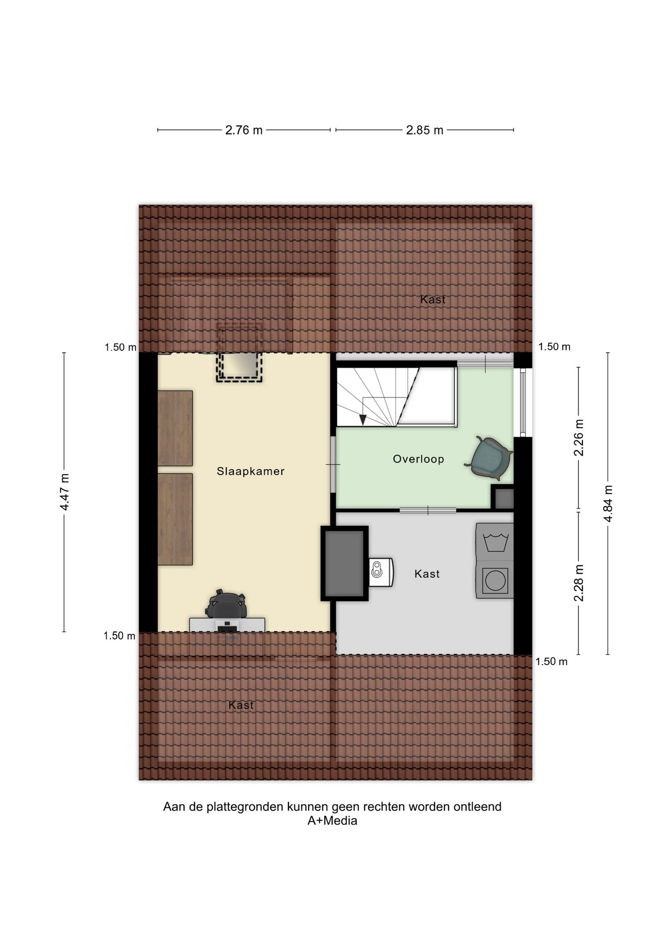 Via de vaste trap is de tweede verdieping bereikbaar. Op de overloop is ruimte voor extra bergruimte en bevindt zich de opstelling van de cv-installatie. Vanaf de overloop is er toegang tot de vierde kamer. Deze ruimte is veelzijdig in gebruik en kan uitstekend dienen als werk- of hobbykamer, maar is ook zeer geschikt als extra (vierde) slaapkamer. Dankzij de praktische indeling betreft dit een volwaardige verdieping.