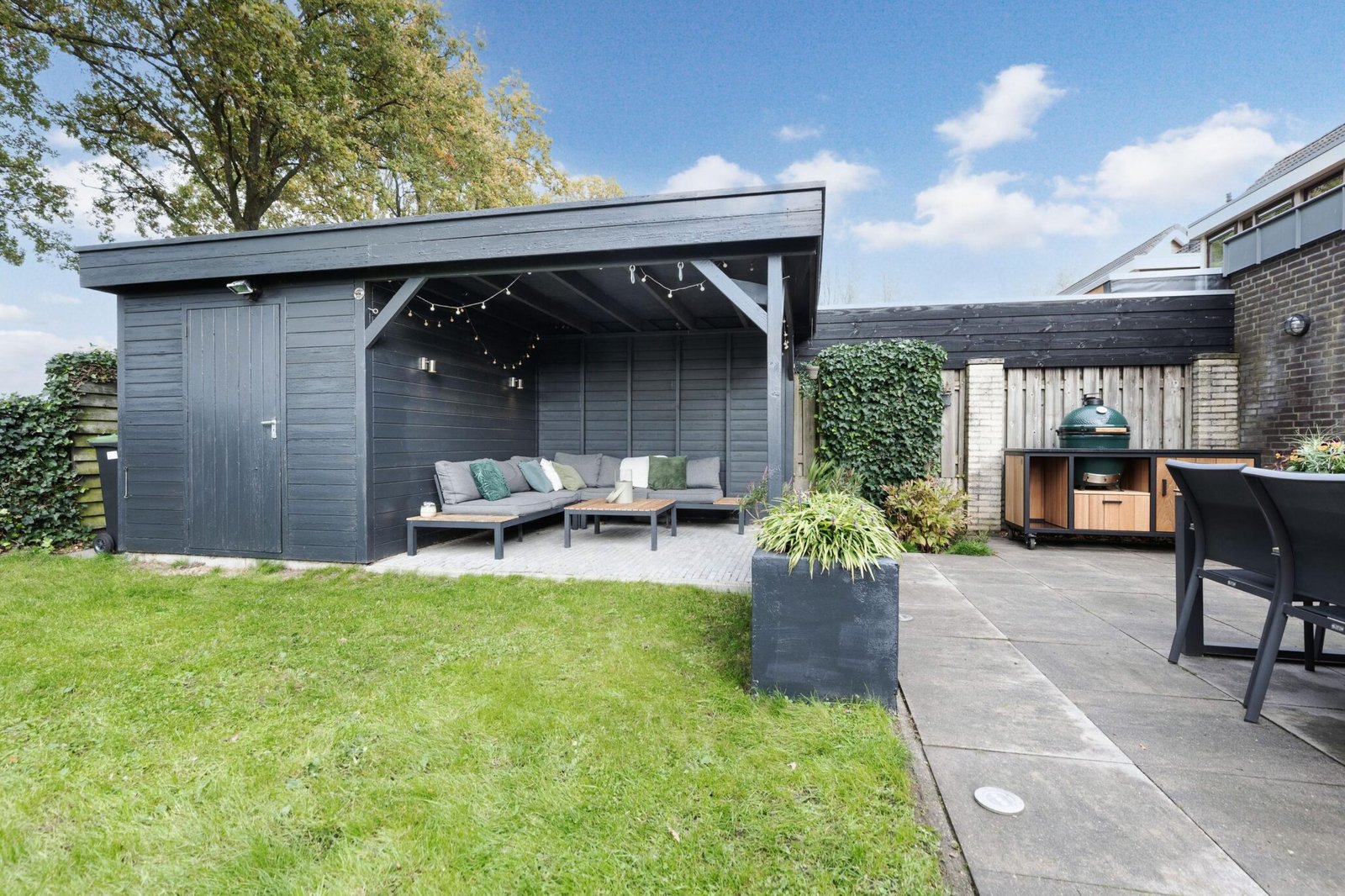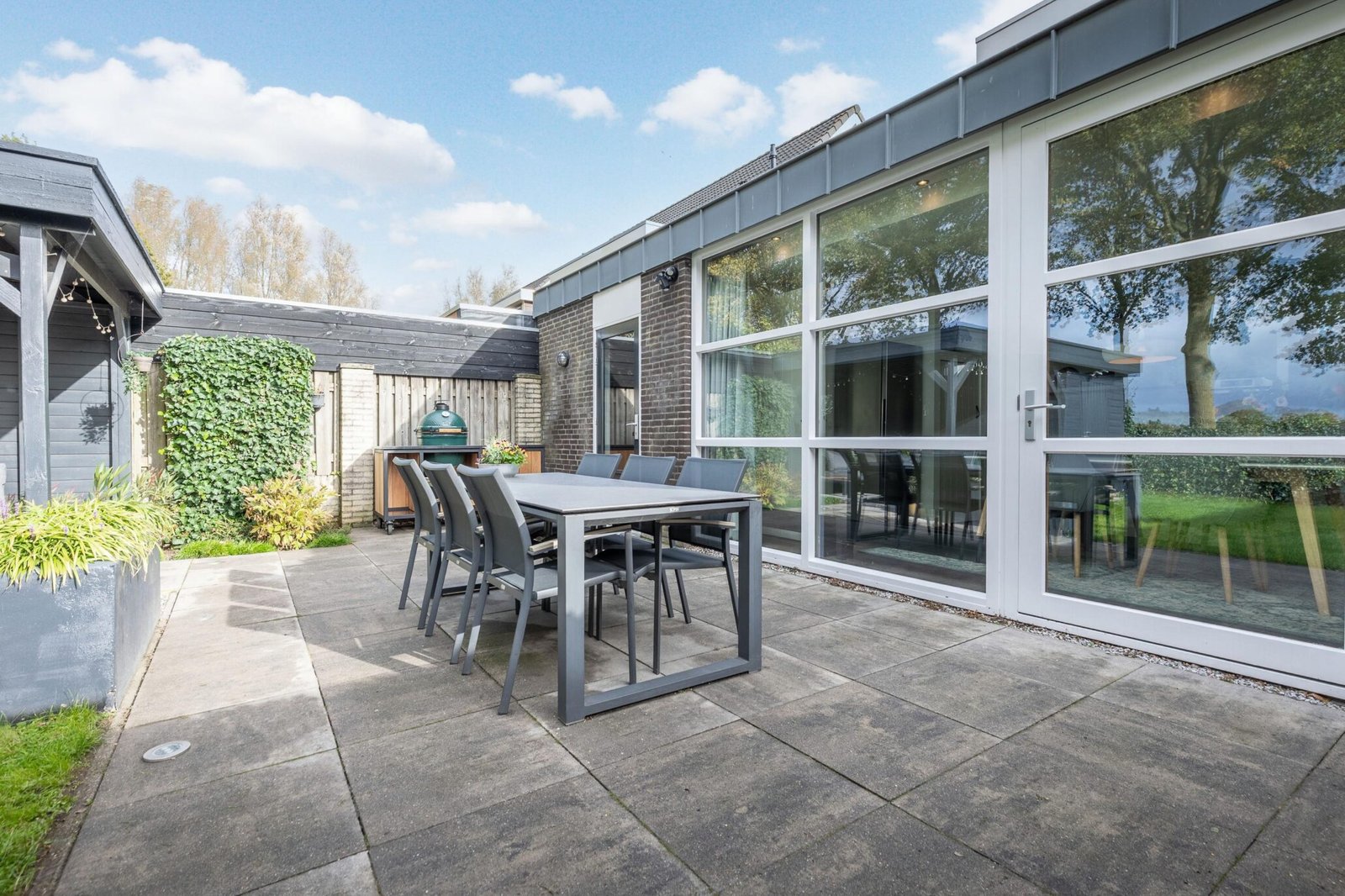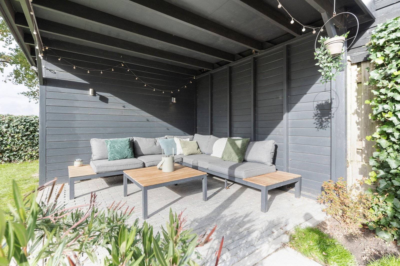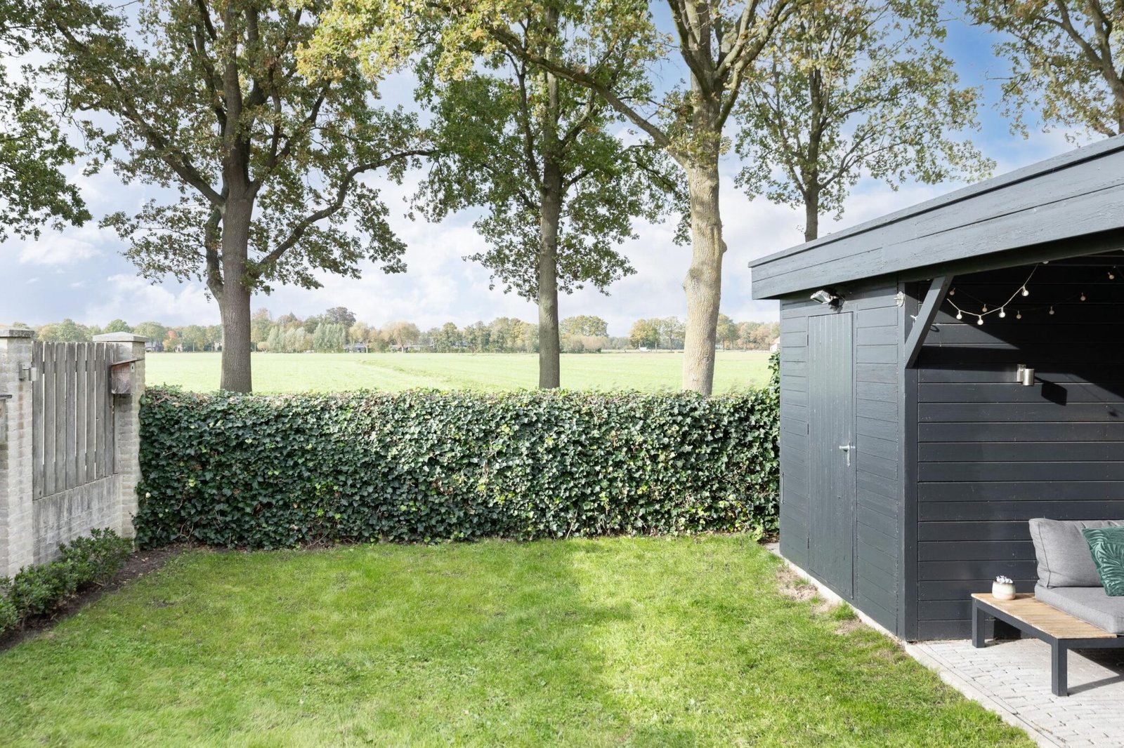 De achtertuin biedt een prachtig vrij uitzicht over de landerijen. Hier kun je tot in de avond genieten van rust en privacy en een prachtige zonsondergang. De tuin is verzorgd aangelegd met een royaal terras, borders en een gezellige overkapping met praktische berging, een heerlijke plek om het hele jaar door buiten te zitten. De voortuin is in 2023