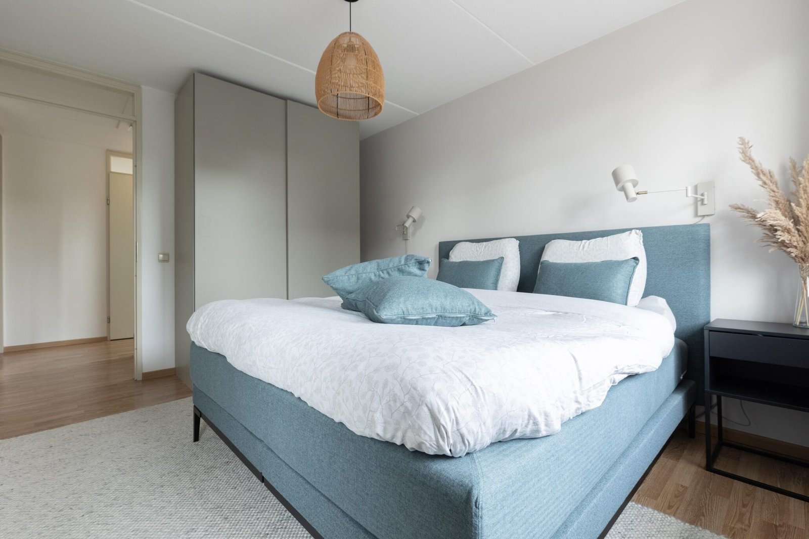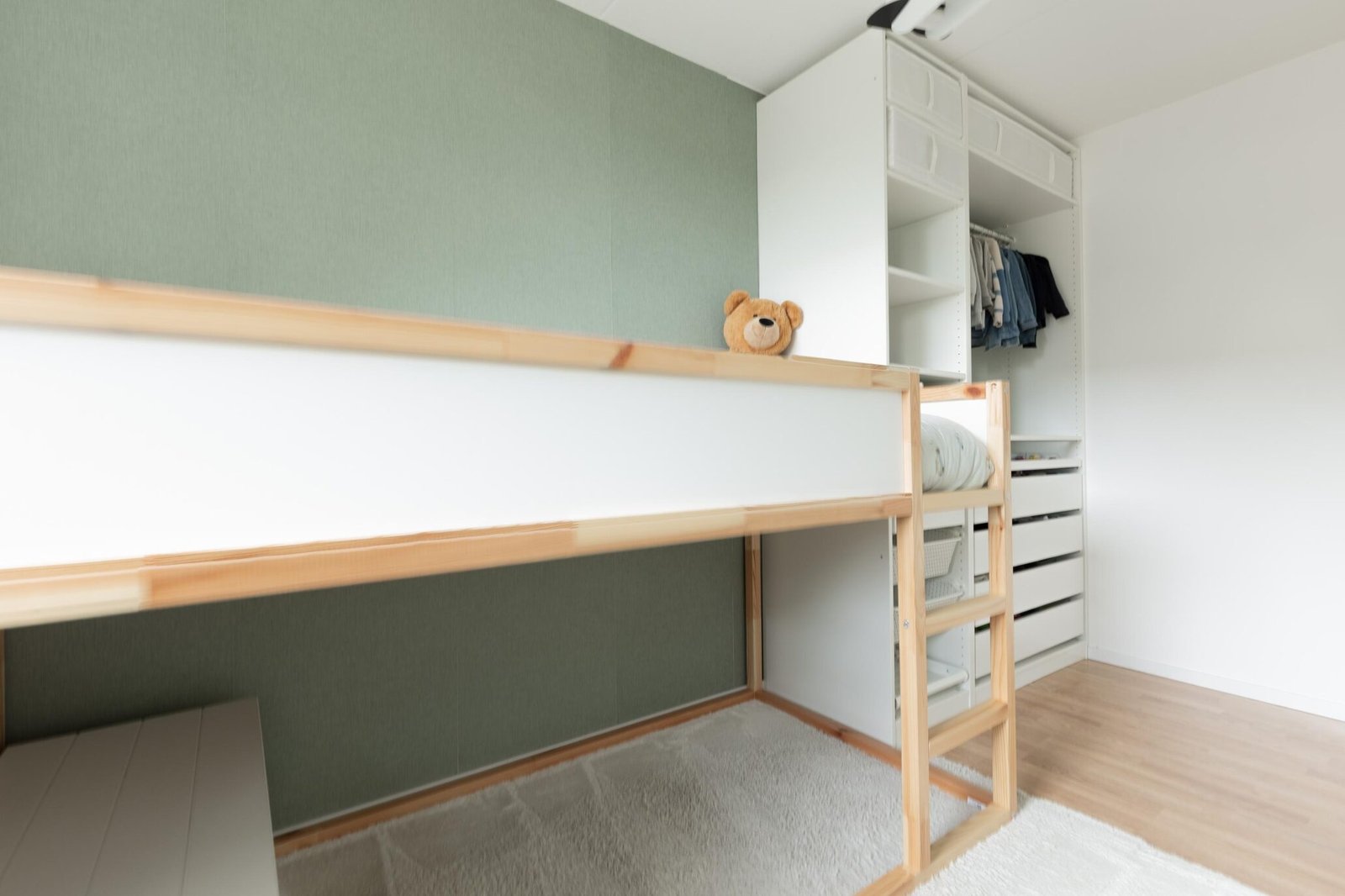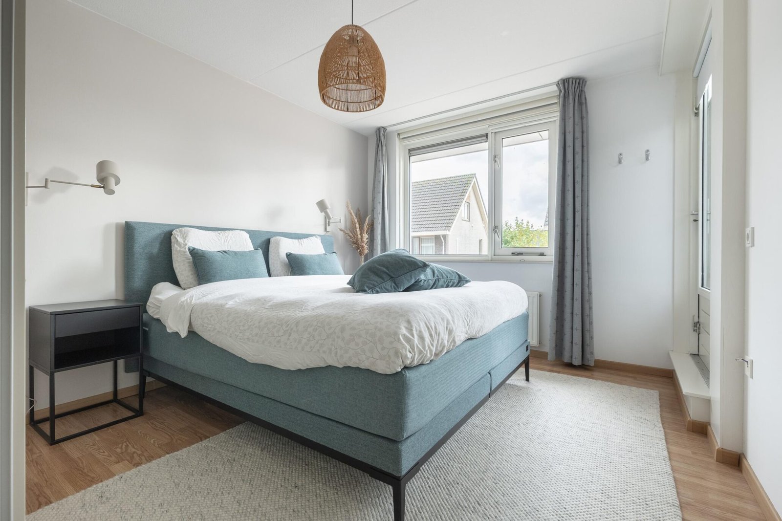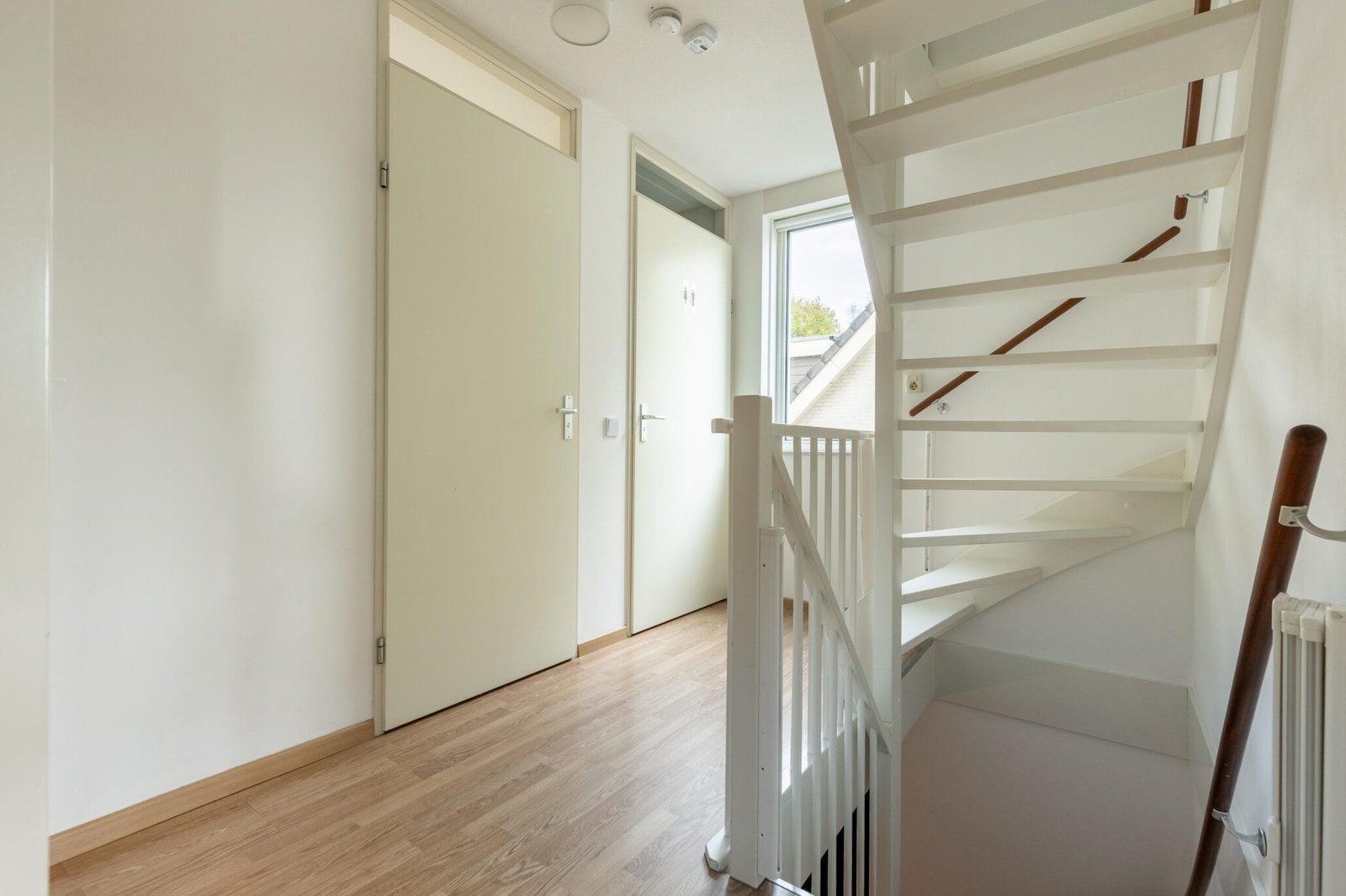 De eerste verdieping telt drie volwaardige slaapkamers en een ruime, moderne badkamer. De lichte laminaatvloer loopt door over de gehele verdieping, wat zorgt voor een rustige uitstraling. De hoofdslaapkamer heeft toegang tot een balkon
