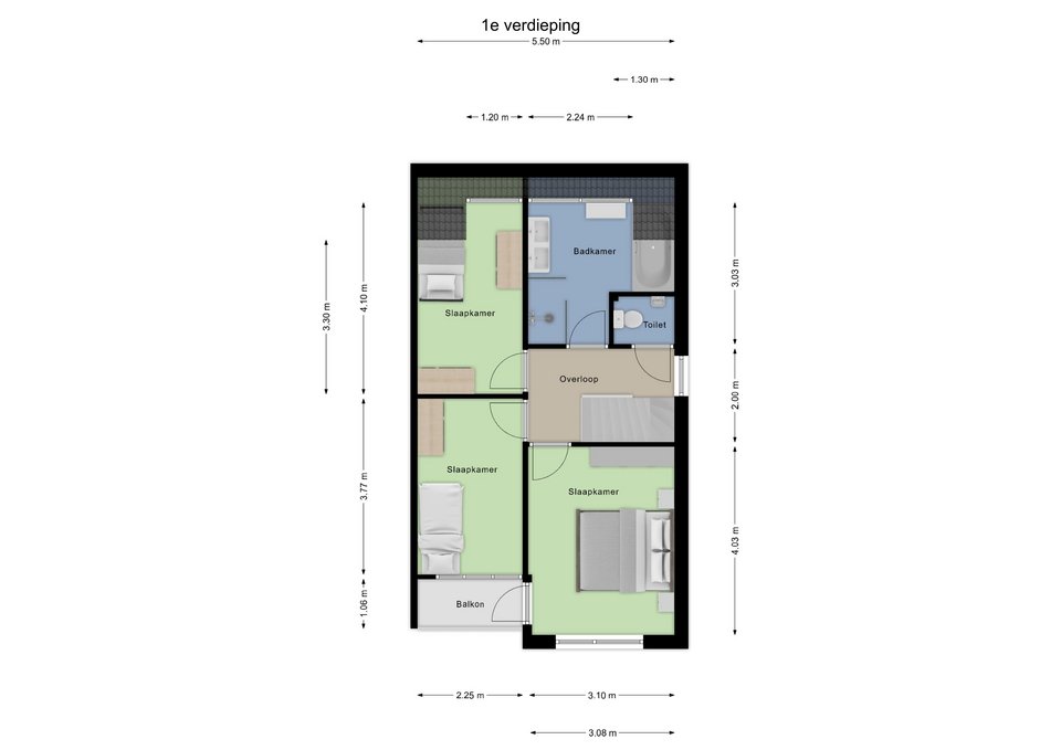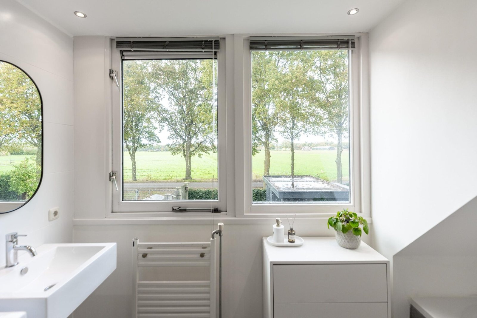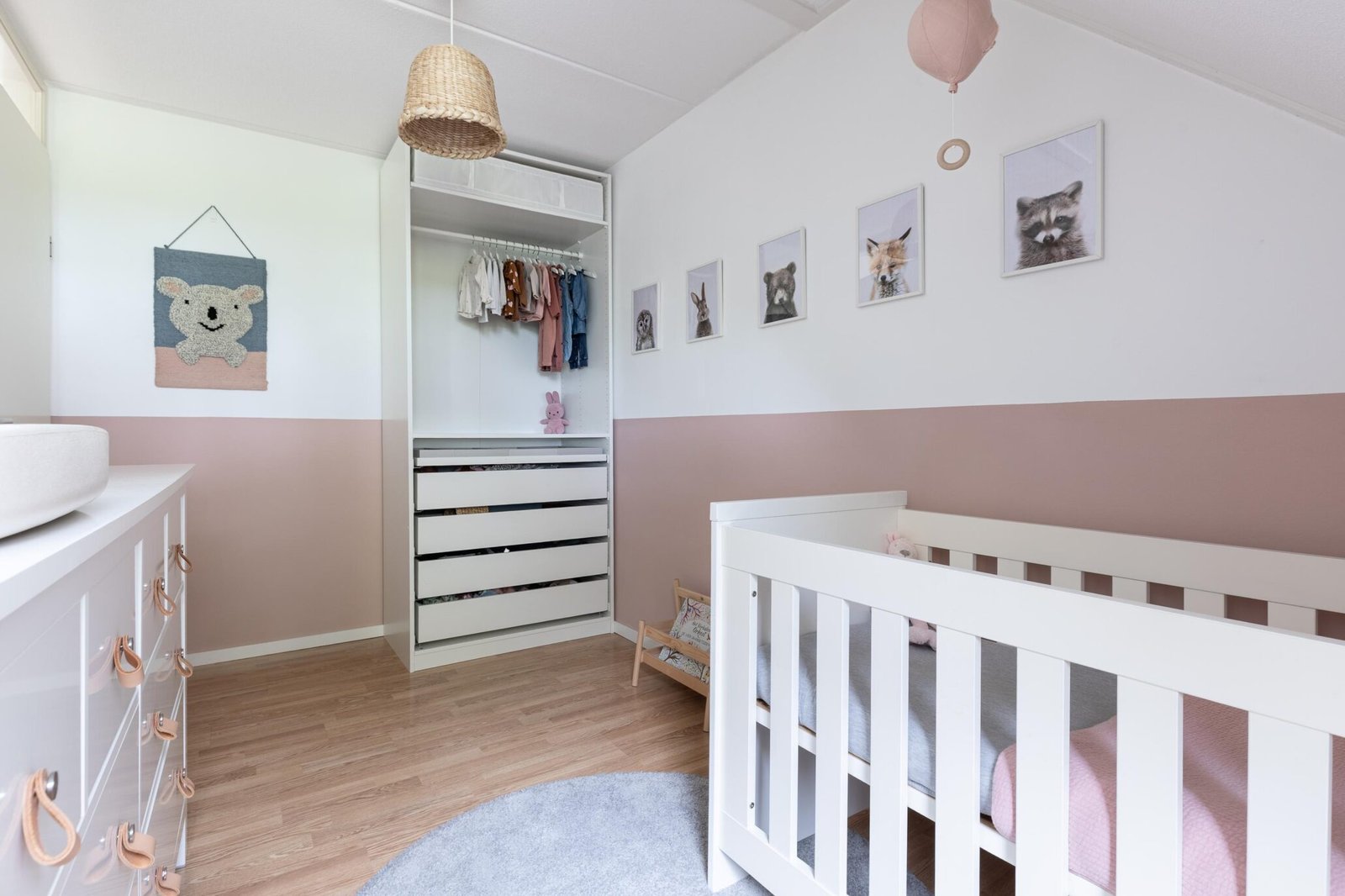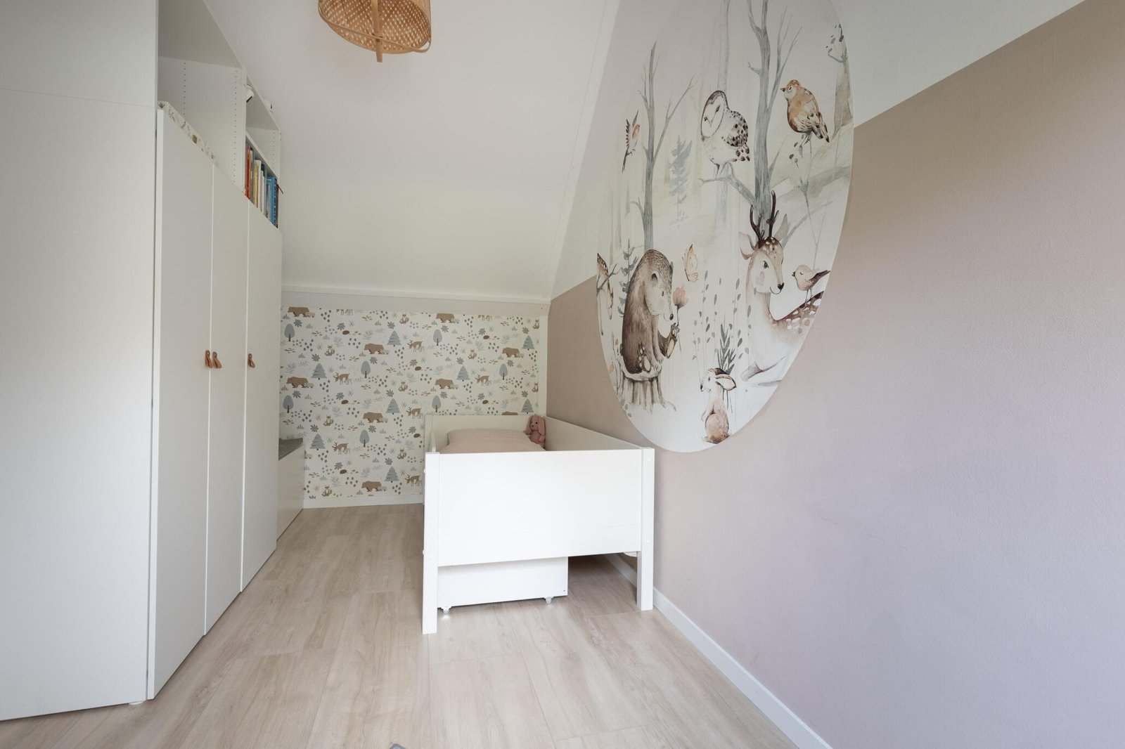 De eerste verdieping telt drie volwaardige slaapkamers en een ruime, moderne badkamer. De lichte laminaatvloer loopt door over de gehele verdieping, wat zorgt voor een rustige uitstraling. De hoofdslaapkamer heeft toegang tot een balkon