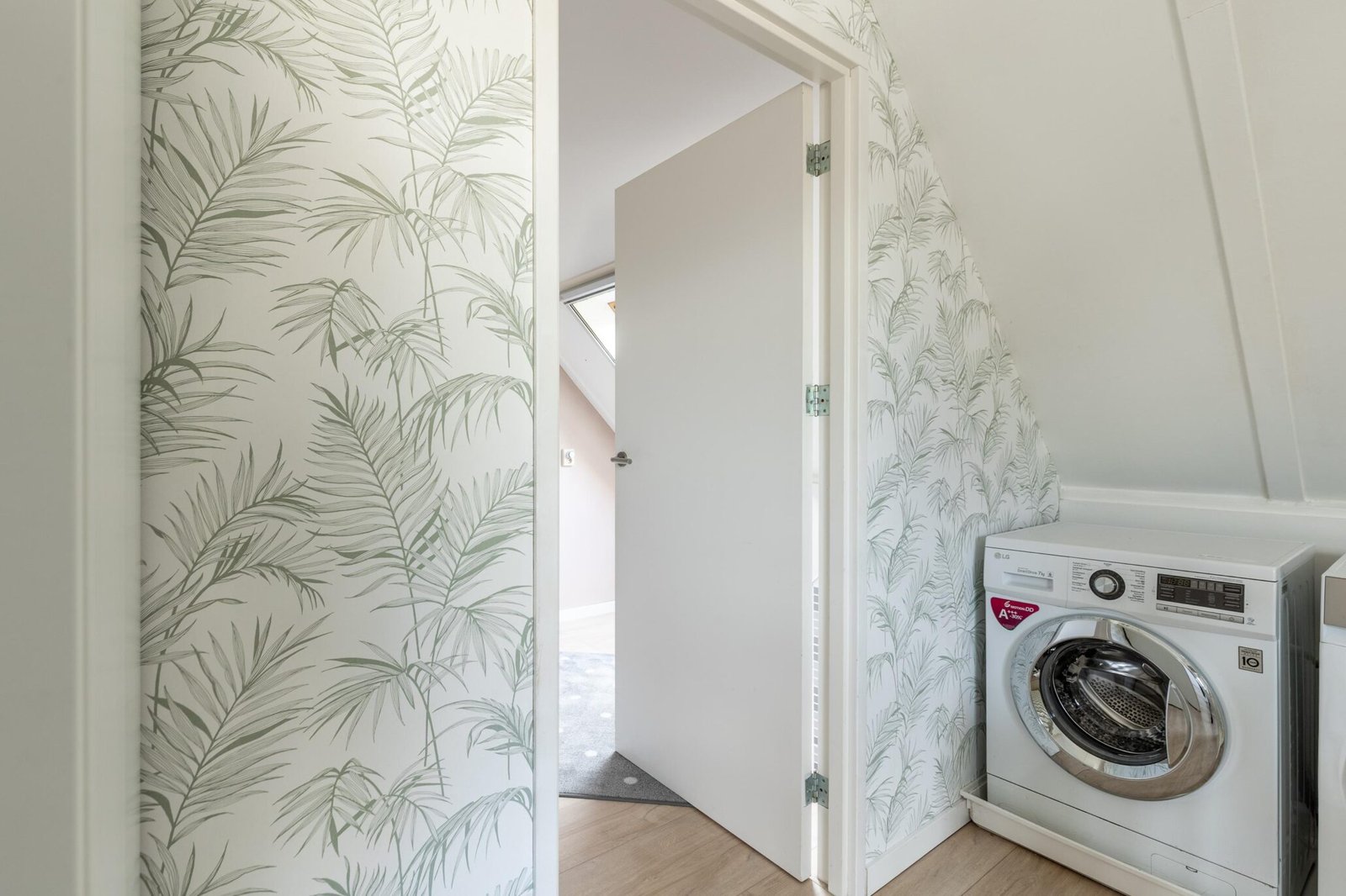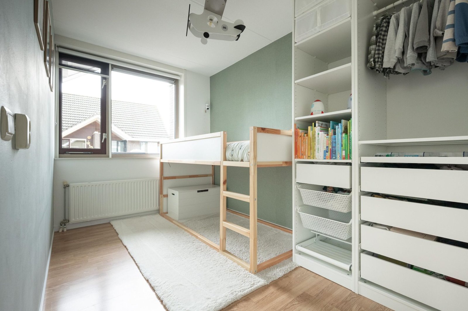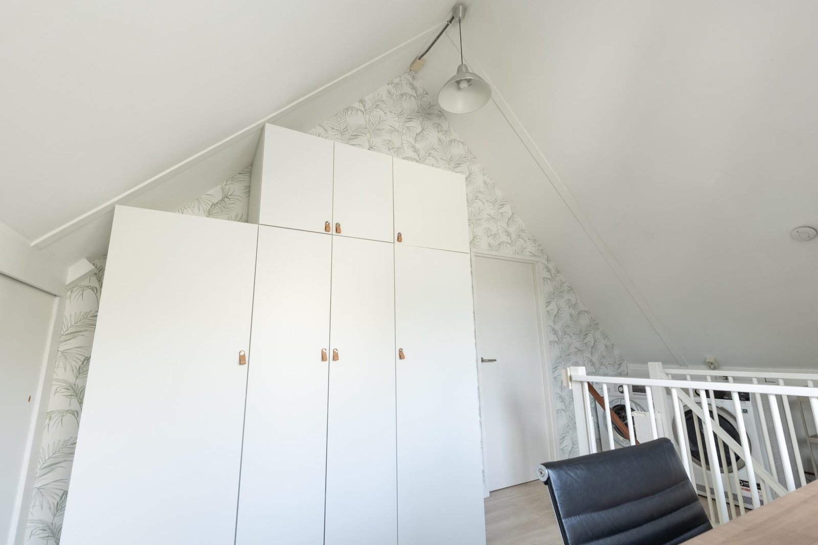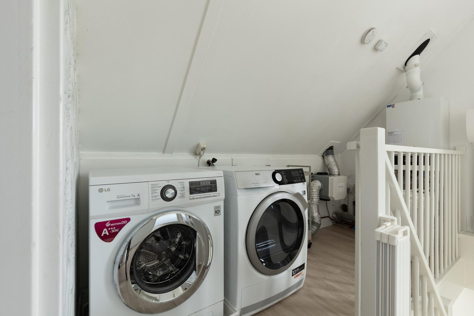 de aansluitingen voor wasmachine en droger, de cv-installatie en de unit voor de mechanische ventilatie met vocht sensor. De vierde slaapkamer op deze etage is verrassend ruim en ook voorzien van extra bergruimte achter de knieschotten.