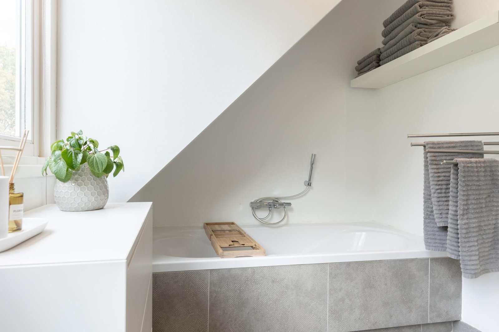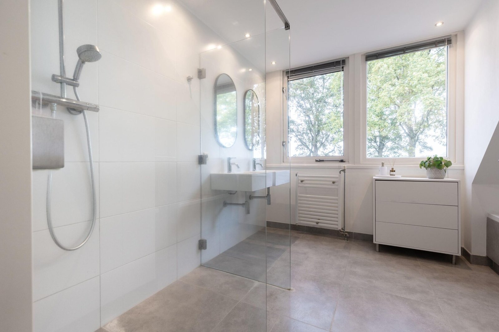 aan de voorzijde van de woning. De twee overige kamers zijn ideaal als kinder- of werkkamer. De badkamer is door de brede dakkapel heerlijk licht en ruim. Hier vind je een ligbad, een ruime inloopdouche, dubbele wastafel, een designradiator, mechanische ventilatie en een te openen raam. Daarnaast is er op de overloop een separaat toilet met fonteintje.