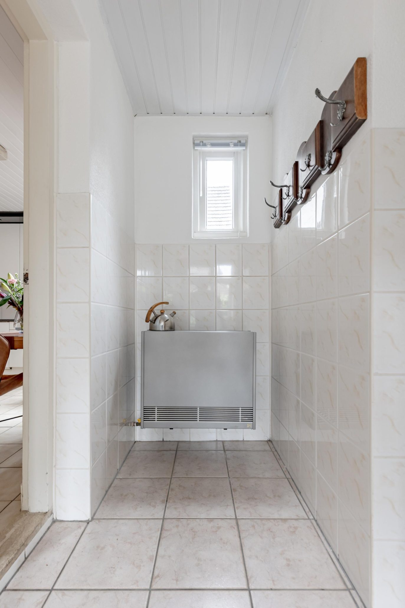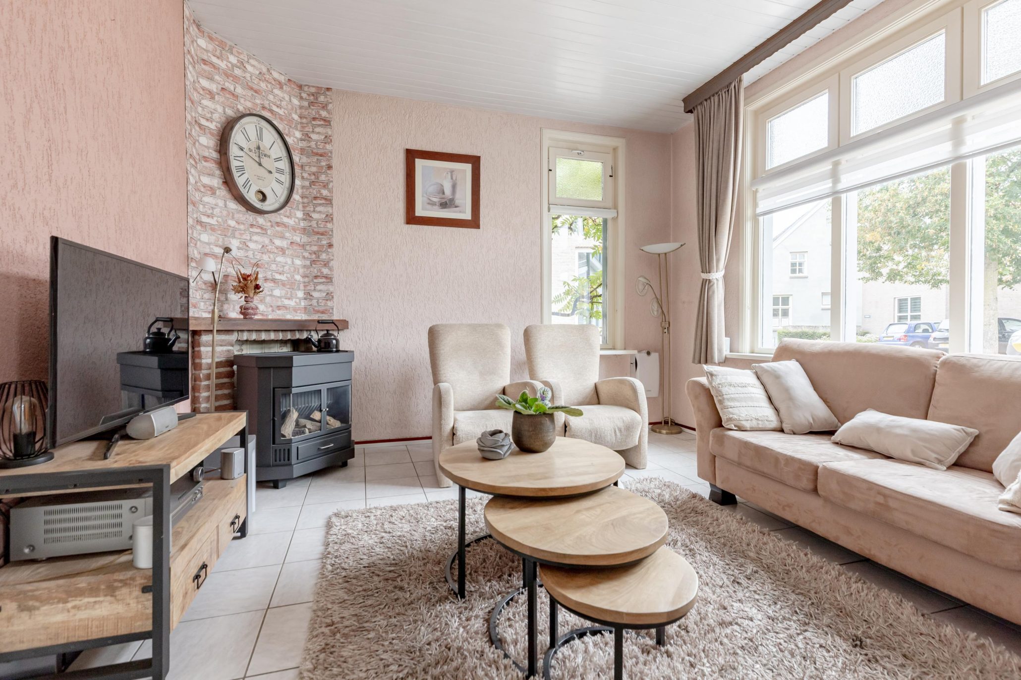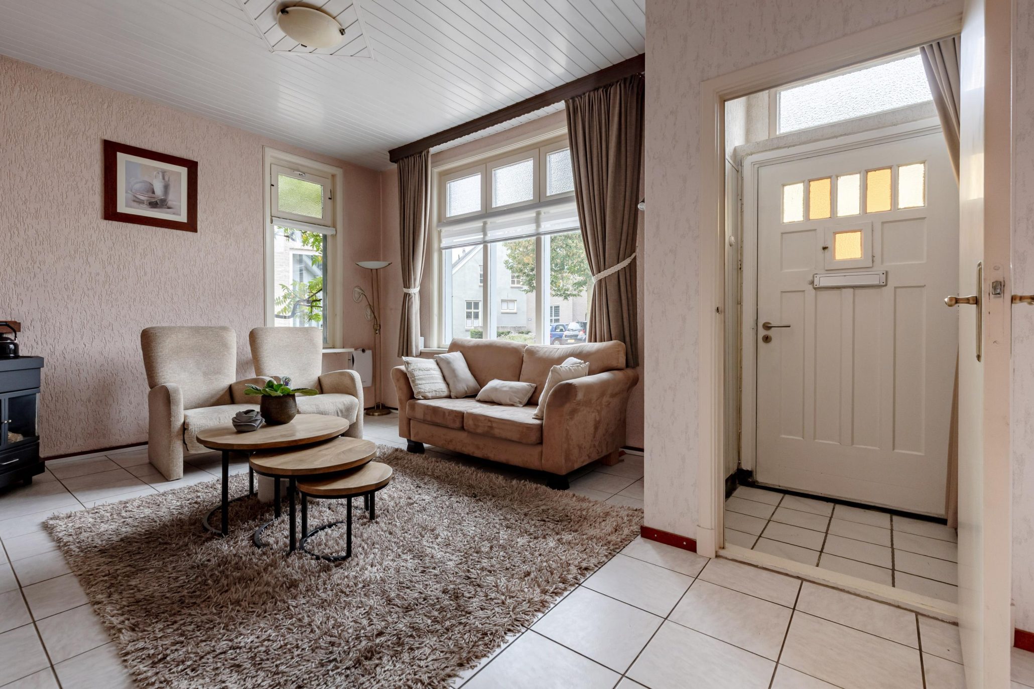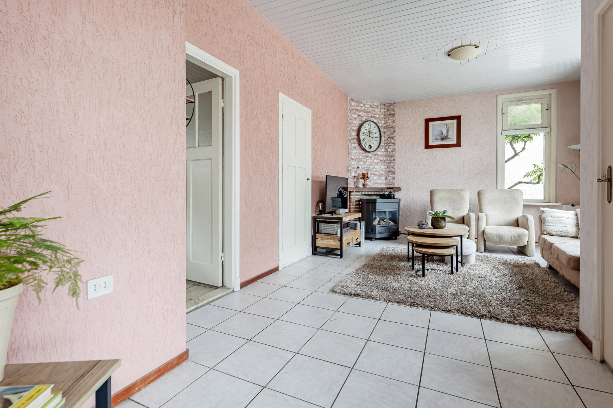 Via de voordeur kom je binnen in een kleine hal welke direct toegang biedt tot de woningbrede woonkamer. Deze ruimte is bijzonder ingedeeld met een linker- en rechtergedeelte, afgewerkt met een tegelvloer en voorzien van sfeervolle gaskachel. Dankzij de ramen aan de voor- en zijkant, uitgevoerd met geluidsisolerend glas en suskasten, geniet je hier van rust en comfort. De indeling maakt het mogelijk om meerdere zit- of eethoeken te creëren, waardoor