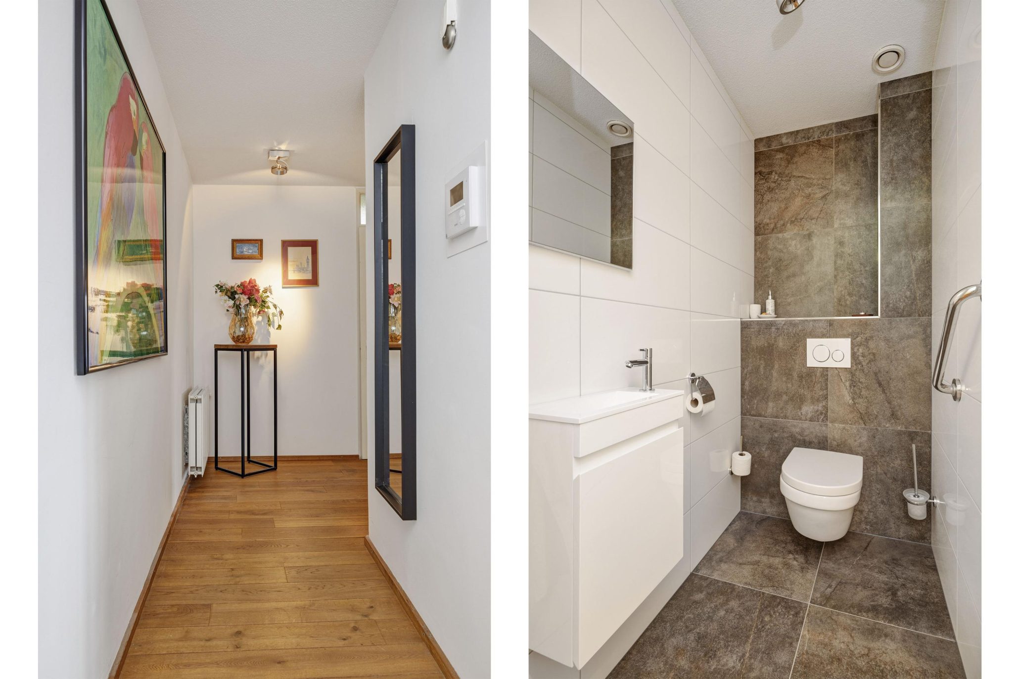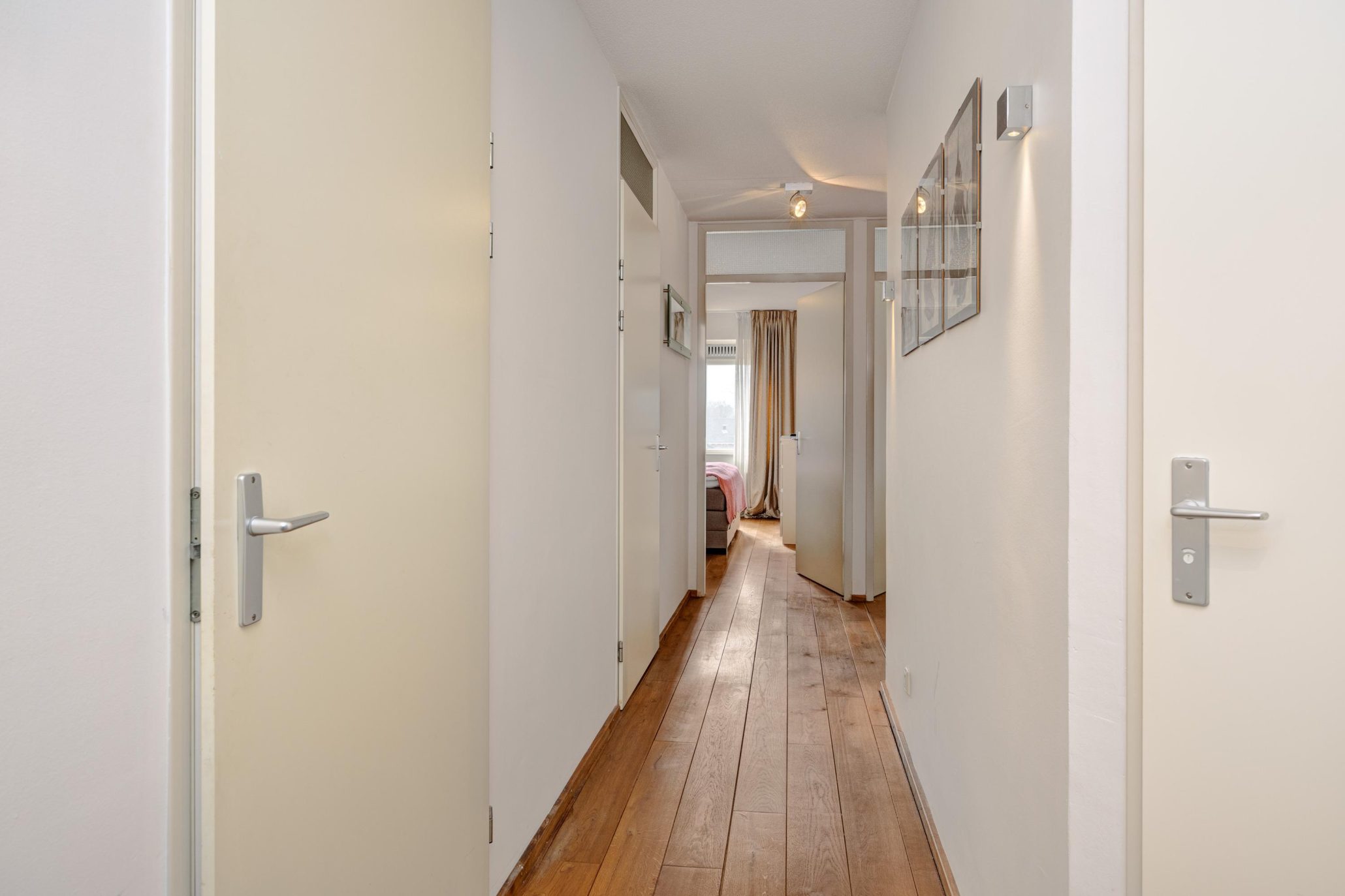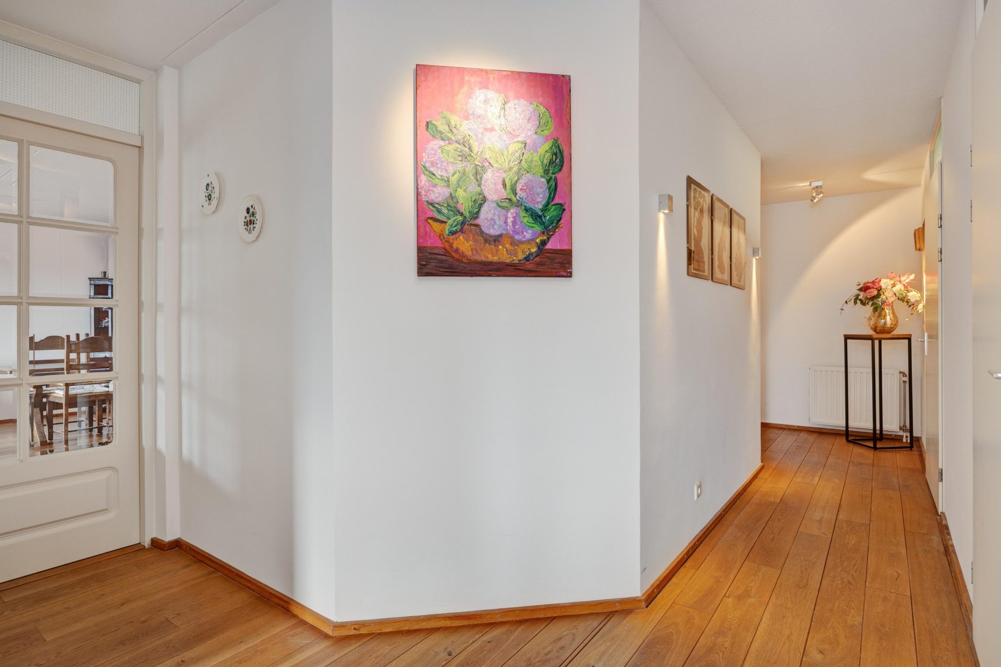 Naast de voordeur bevindt zich de meterkast en bij binnenkomst in het appartement komt u in de hal waar de videofoon hangt. Vanuit de hal zijn alle vertrekken toegankelijk. Het gehele appartement is voorzien van een fraaie doorlopende eikenhouten vloer.