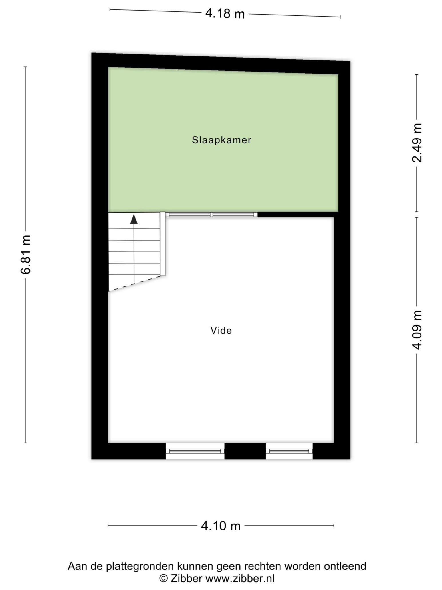 – Slaapvertrek gerealiseerd op hoogte (formeel geen woonoppervlak).